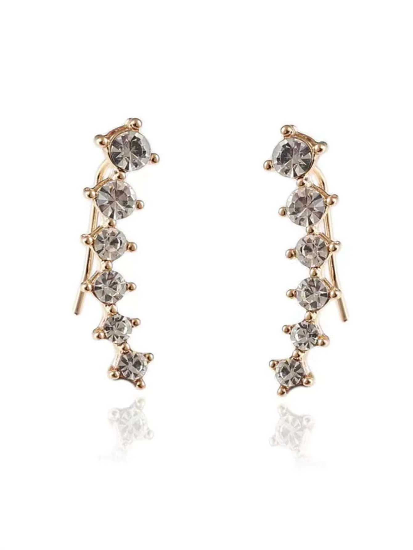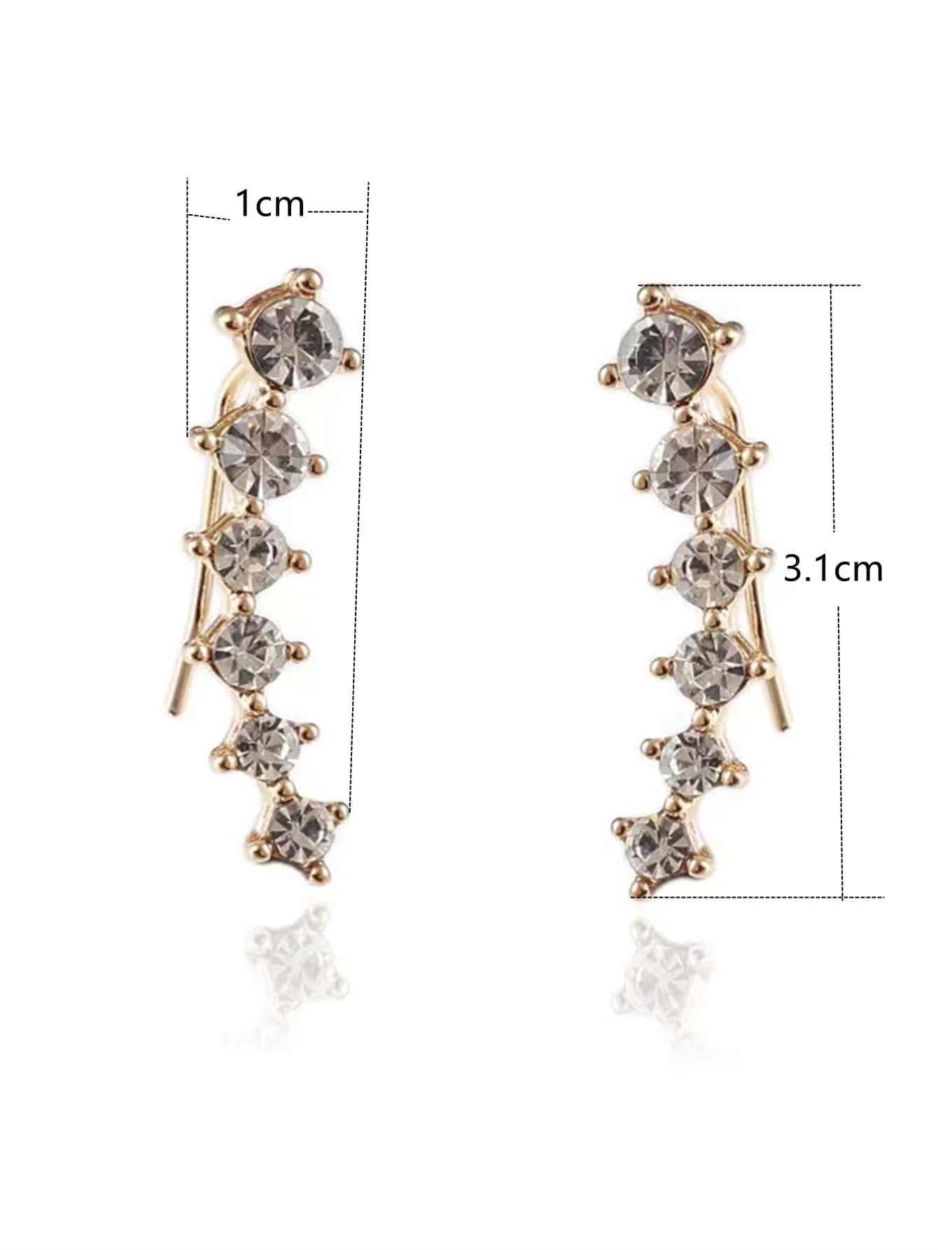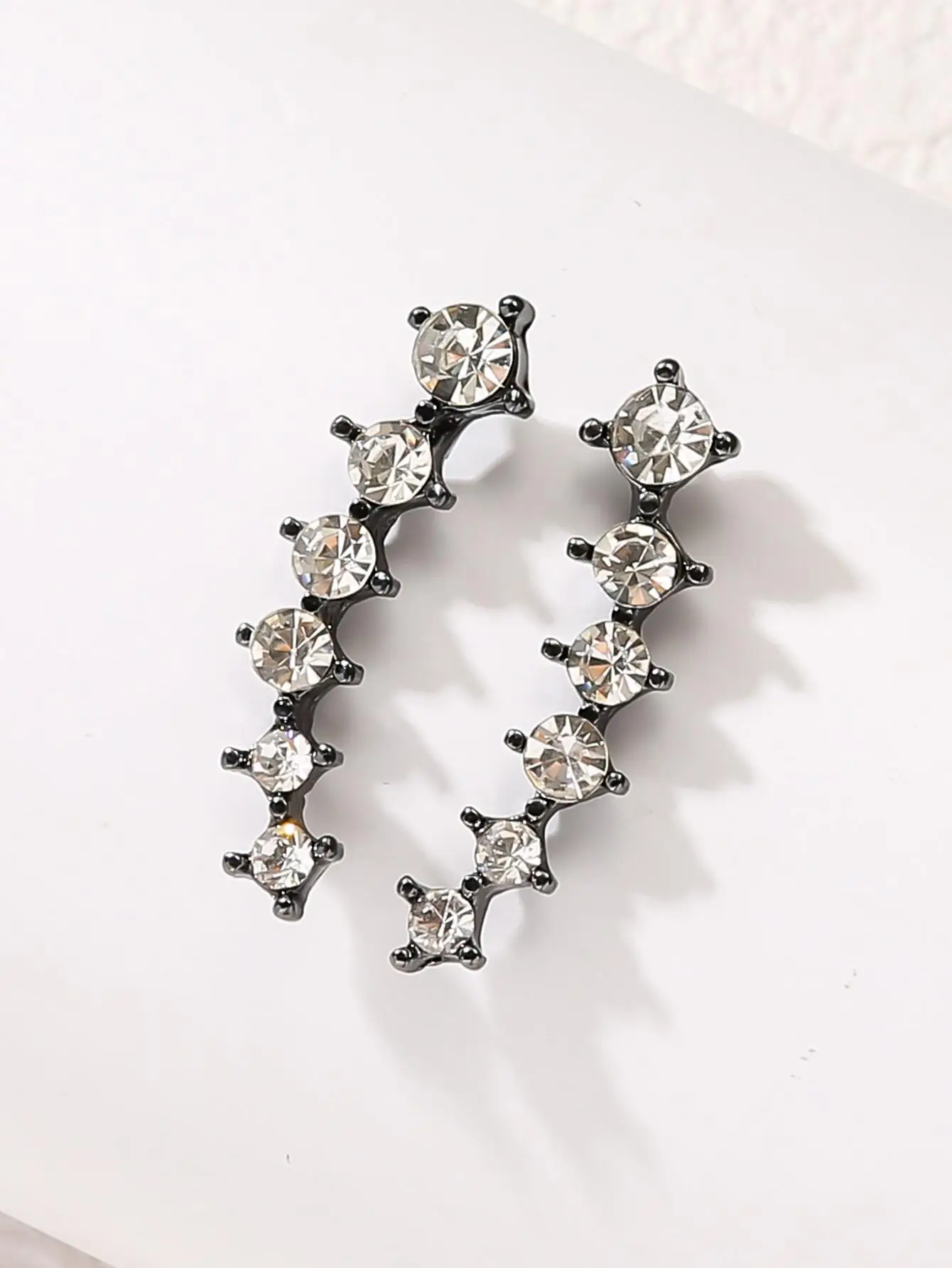2 Gold Color Black White Gem 6 Rhinestone Ear Clip Earrings Women's Simple Fashion Personality Student Girl Party Business All-m