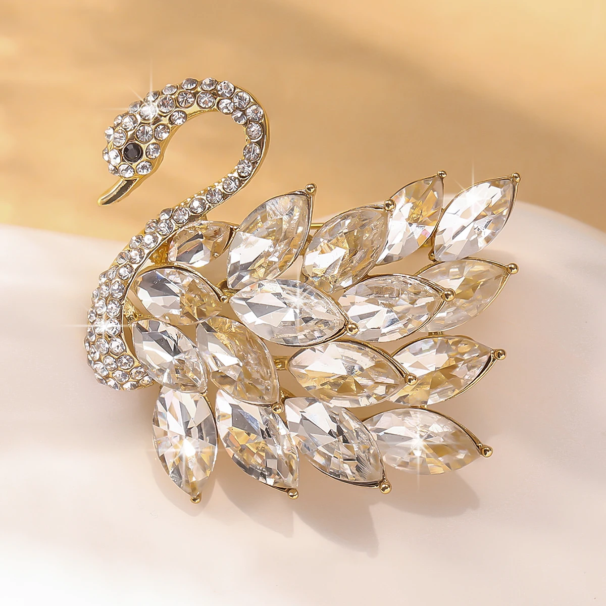 Elegant Crystal Swan Brooch for Women and Girls - Sparkling Rhinestone Animal Pin-804014